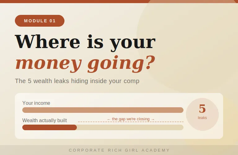 Most high-earning women are losing money in the same five places and never see it because it doesn't show up as a single line item. We'll map exactly where it's going and what to do first.